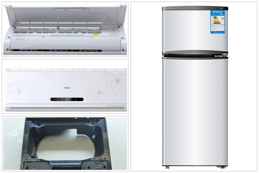 冰箱面板,空調(diào)面板、空調(diào)骨架、空調(diào)格柵、洗衣機(jī)中控板、洗衣機(jī)盤框、游戲機(jī)、VR外殼汽車內(nèi)飾。