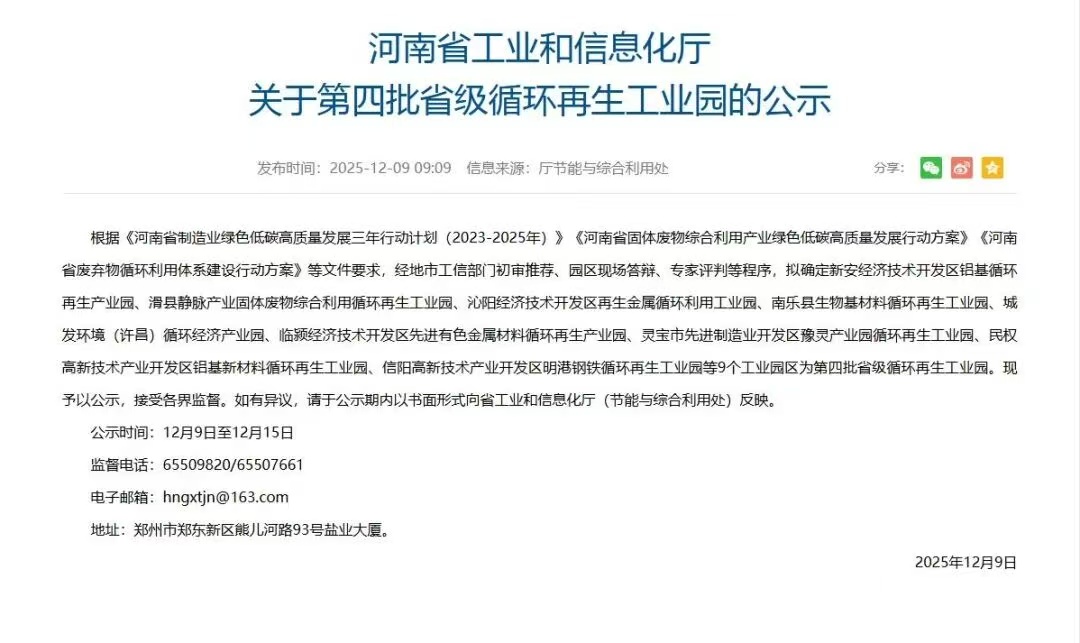 喜訊!鄢陵縣首家園區獲評省級循環再生工業園2025.12.17